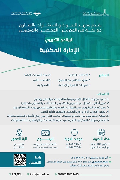 عنوان دورة التدريب : البرنامج التدريبي في الإدارة المكتبية