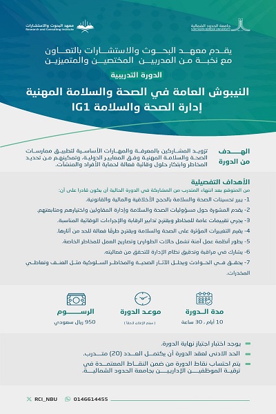 عنوان دورة التدريب : IG1 النيبوش العامة فى الصحة والسلامة المهنية تقييم المخاطر