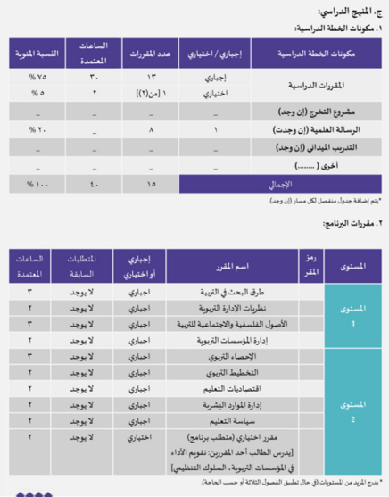 - أن يكون المتقدم حاصلاً على درجة البكالوريوس أو ما يعادلها من جامعة سعودية أو جامعة أخرى معترف بها من قبل وزارة التعليم في المملكة العربية السعودية في أحد التخصصات التربوية بمعدل تراكمي لا يقل عن جيد. ويمكن قبول غير التربوي على أن يجتاز وفق النظام مقررات تكميليه يحددها له القسم العلمي.